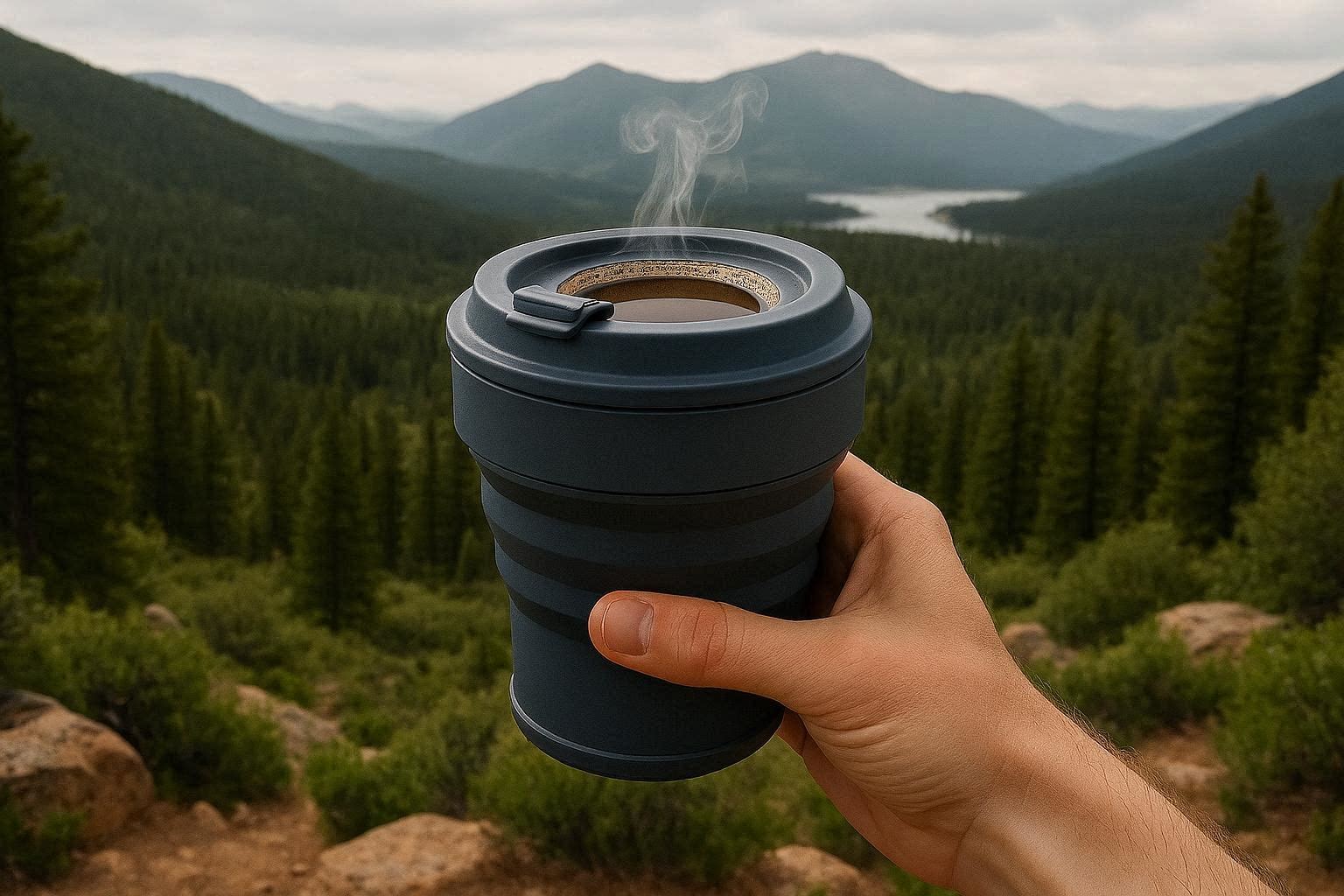 Insulated Collapsible Silicone Travel Mug With Leak Proof Lid For Outdoor Hiking And Hot Coffee