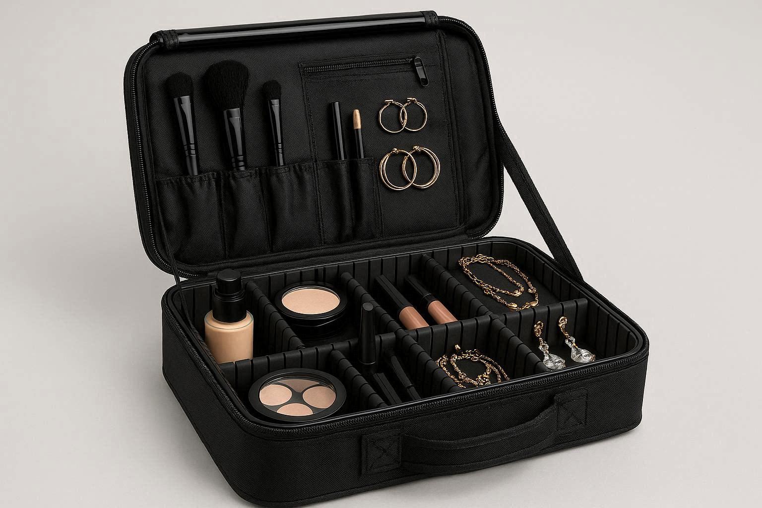 Professional Makeup Train Case With Adjustable Dividers For Artists Beauty Tools And Jewelry Storage