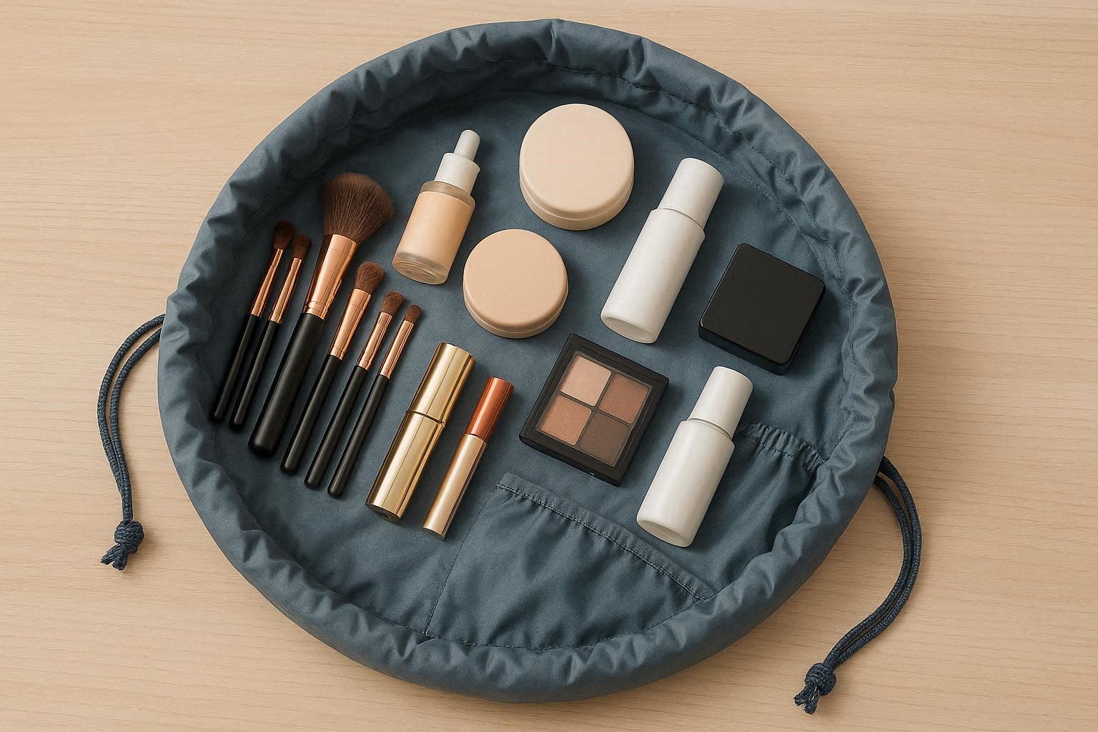 Save time every morning with our drawstring lazy makeup bag, which opens completely flat in seconds to reveal all your cosmetics on a clean surface. This innovative design eliminates the need for digging through deep pockets, allowing you to see your entire collection at once and pack everything away with a single pull of the cord.